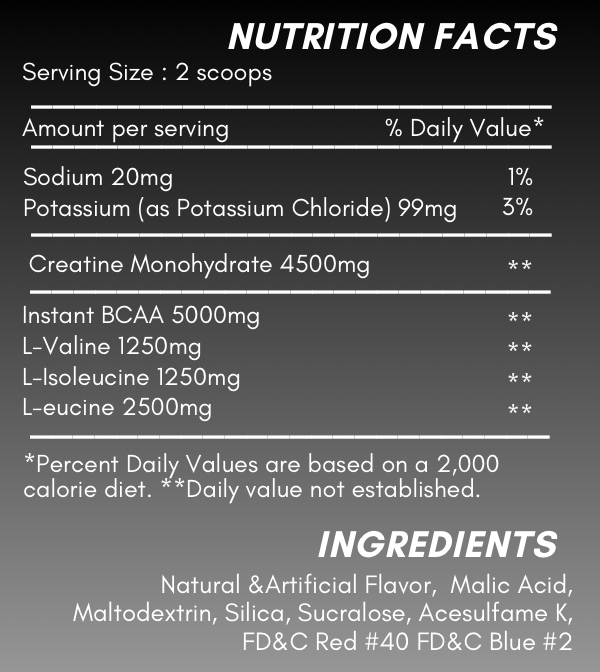 Packed with Creatine Monoyhdrate, BCAAs, and electrolytes to hydrate, repair, and enhance the recovery and performance of your muscles. Comes in a delicious Green Apple flavor!