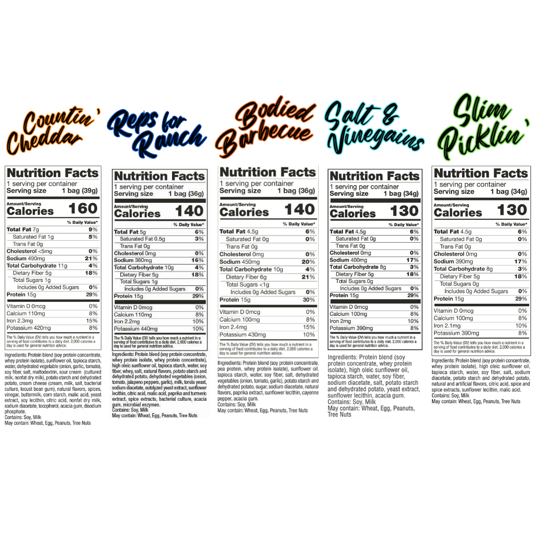 Crunch your goals with these crisps! Satisfy those SNAX cravings with our high protein, low calorie, high fiber chips.